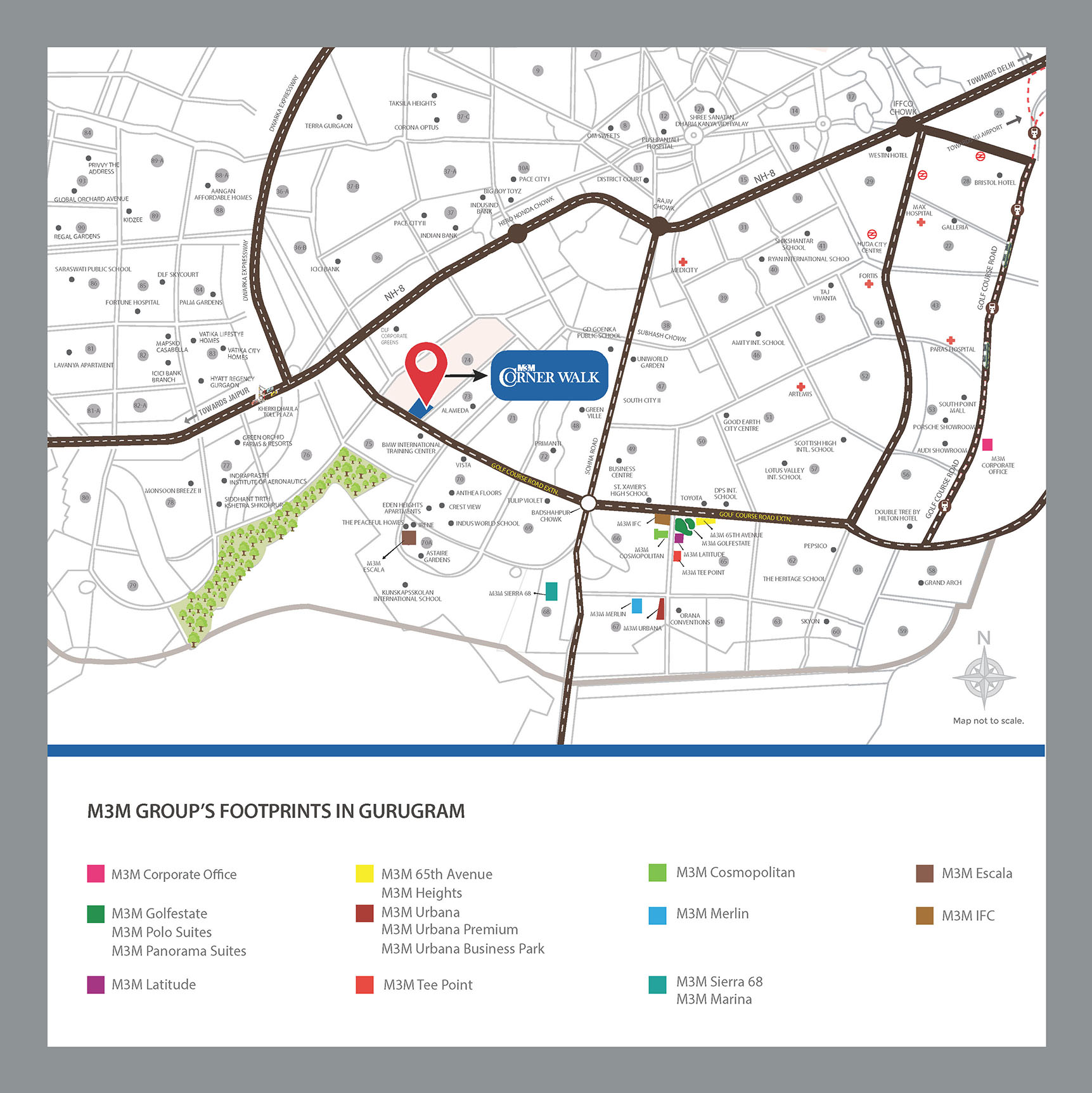 • With its premium corner location and large frontage, ‘M3M Corner Walk’ has an easy two-side access, being a rectangular-shaped project